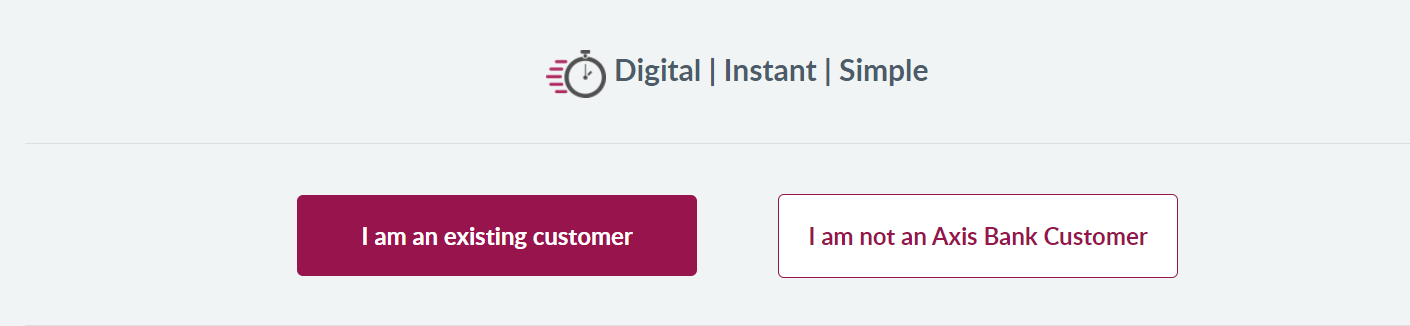 - आप यहां पर लिखा रहेगा I am an existing customer or I am not an Axis Bank customer. यदि आप पहले से एक्सिस बैंक के कस्टमर हैं तो आप इस वाले बटन पर क्लिक करें; I am an existing customer । अगर आप एक्सिस बैंक के कस्टमर नहीं है तो आपको यहा I am not an Axis Bank customer पर क्लिक करना है।