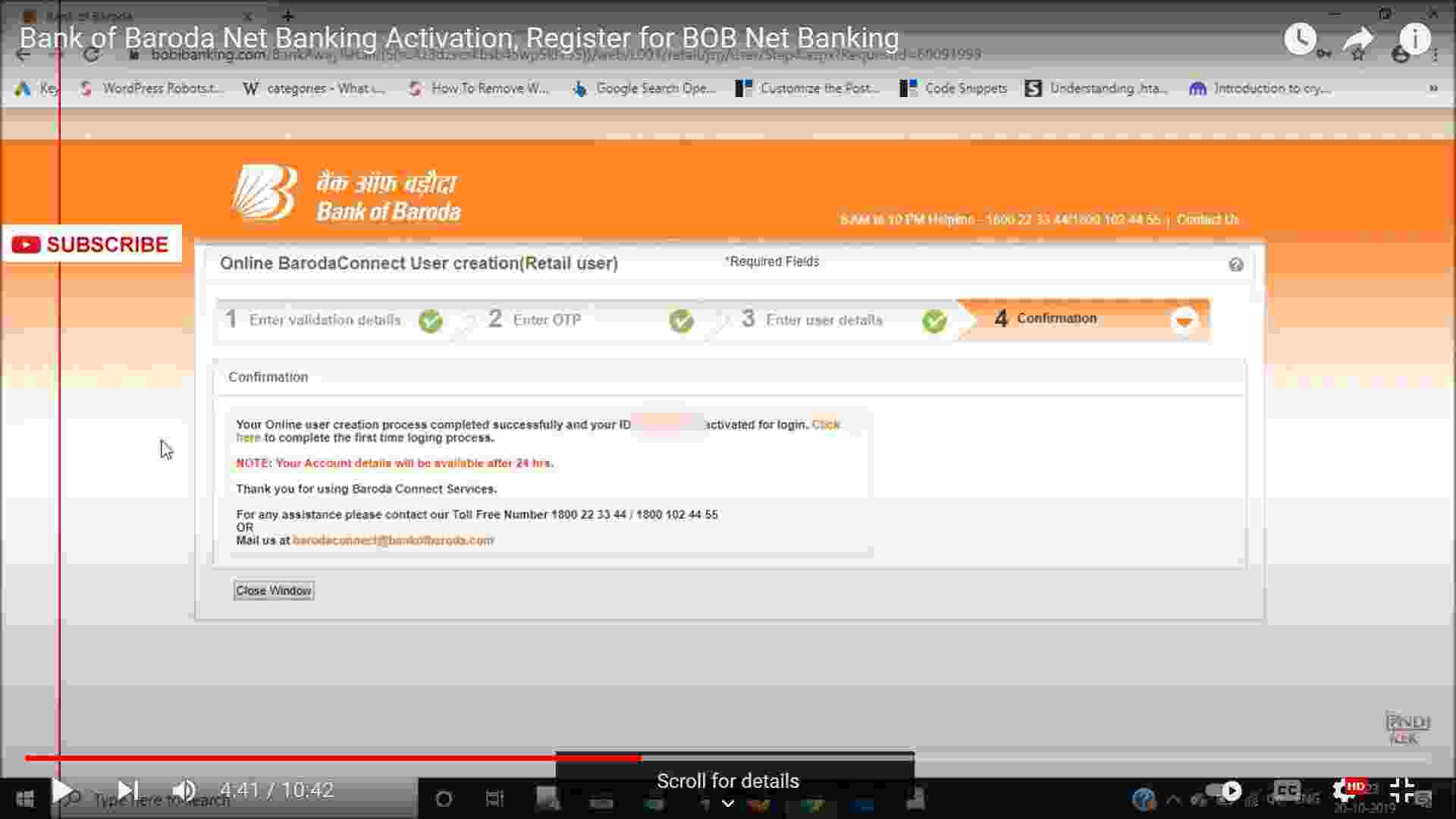 इस तरह से आप अपना बैंक ऑफ बड़ौदा में इंटरनेट बैंकिंग रजिस्ट्रेशन कंप्लीट(Bank of Baroda net banking registration Kaise kare) कर लिए हैं। इंटरनेट बैंकिंग सर्विस के लिए हमने पासवर्ड भी सेट कर लिया और हमने जो तीन User ID mention की थी। उनमें से हमें एक मिल गई है।