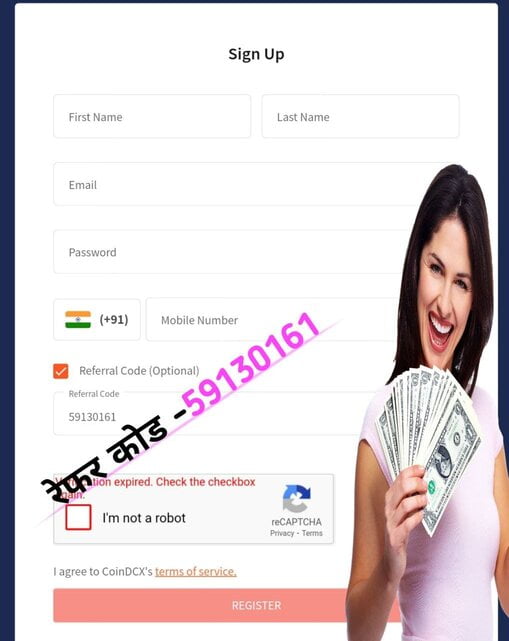 अब आपको कुछ पर्सनल डिटेल टाइप करना है जैसे फर्स्ट नेम, लास्ट नेम, ईमेल, पासवर्ड, मोबाइल नंबर, रेफरल कोड, साथ में कैप्चा और उसके बाद रजिस्टर बटन पर क्लिक कर देना है।