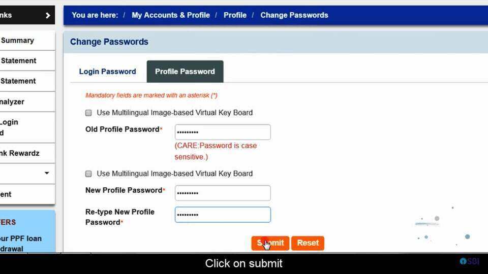 How to reset SBI net banking profile password